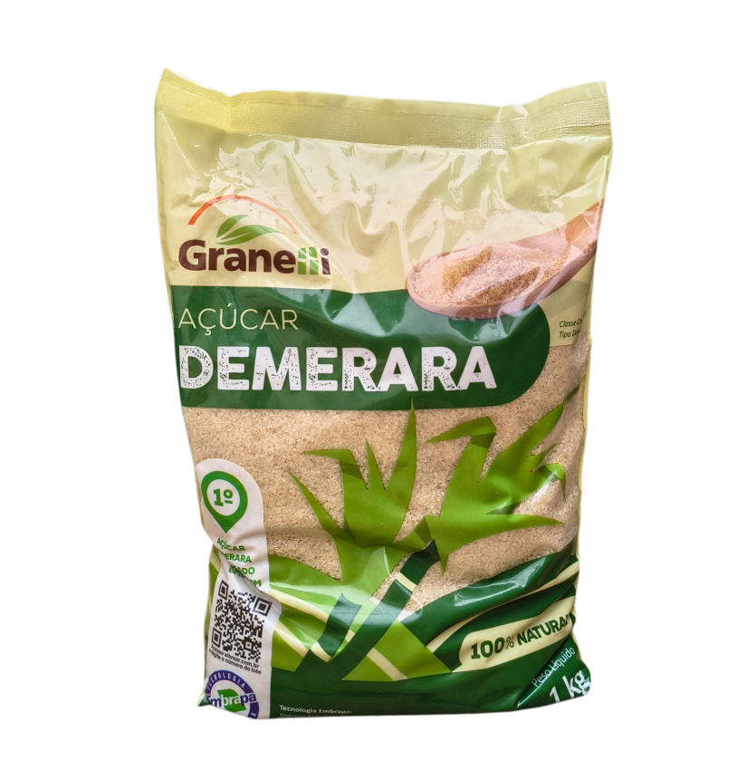 Açúcar Demerara Granelli 100% Natural, produzido a partir da cana-de-açúcar e levemente refinado para preservar seus cristais dourados e o sabor suave característico. Mantém parte dos nutrientes naturais da cana, como minerais e vitaminas, sendo uma alternativa mais saudável ao açúcar branco. Com textura crocante e notas levemente caramelizadas, é ideal para adoçar bebidas, sobremesas e receitas, trazendo equilíbrio entre sabor e qualidade.