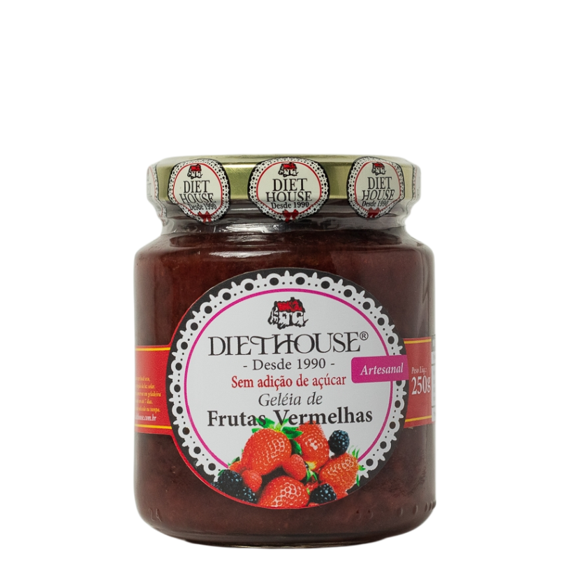 Deliciosa geleia artesanal de frutas vermelhas, preparada com morangos, framboesas, mirtilos e amoras frescas. Sem adição de açúcar, adoçada naturalmente pelas próprias frutas e xilitol, preservando o sabor autêntico e equilibrado. Textura suave, aroma intenso e cor vibrante, perfeita para acompanhar torradas, iogurtes, bolos ou simplesmente saborear pura. Produzida de forma artesanal, com cuidado em cada etapa, garantindo qualidade e um toque caseiro irresistível.