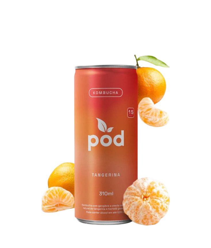 Kombucha de Tangerina Pod Probiótico Natural e Saudável 310ml