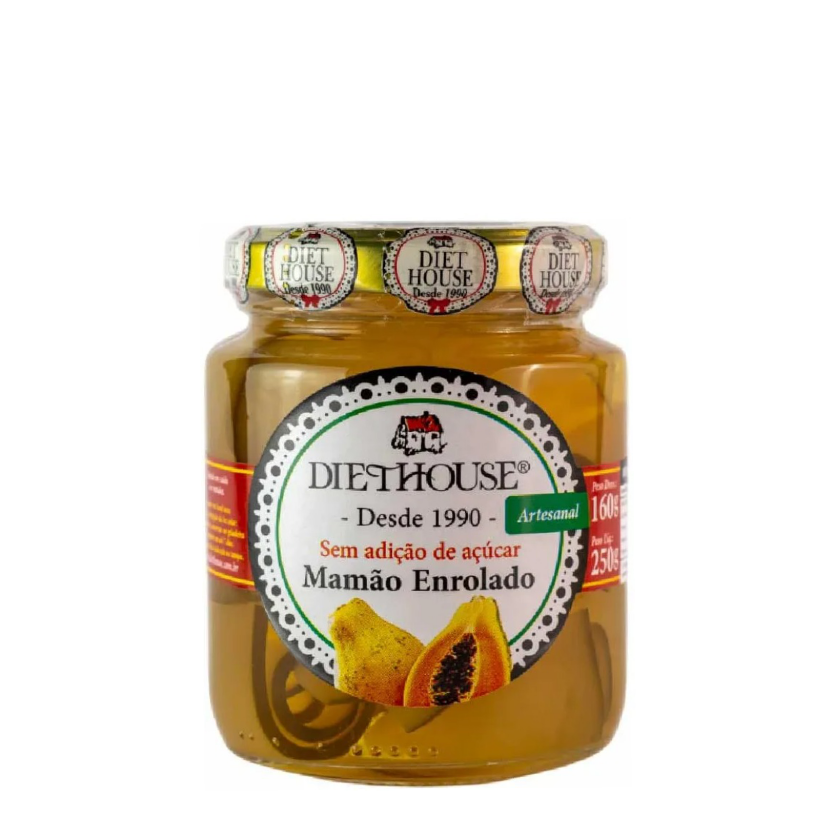 Doce artesanal de mamão enrolado, preparado com frutas frescas e sem adição de açúcar. Mantém o sabor natural e delicado do mamão, com textura macia e aparência charmosa em rolinhos. Produzido em pequenos lotes, com cuidado manual em cada etapa, resulta em uma sobremesa saudável, autêntica e irresistível. Ideal para servir puro, acompanhar cafés, chás ou dar um toque especial em mesas de doces.