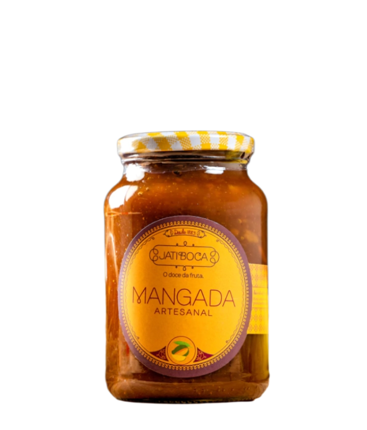 Mangada Artesanal em Formato vidro 800g (Jatiboca). A tradição e o sabor da fruta transformados em pequenas joias de doçura. A Mangada Artesanal Jatiboca em formato bala é feita com polpa selecionada de manga, preparada de forma cuidadosa para preservar o frescor e a intensidade natural da fruta. Cada bala traz a cremosidade e o toque tropical da manga, envoltos em uma textura macia e irresistível. Ideal para quem aprecia doces típicos com qualidade artesanal, é perfeita para compartilhar momentos especiais ou saborear no dia a dia.