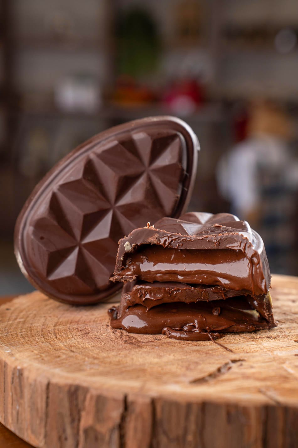 - Recheio trufado com creme de avelã: textura aveludada e indulgente.